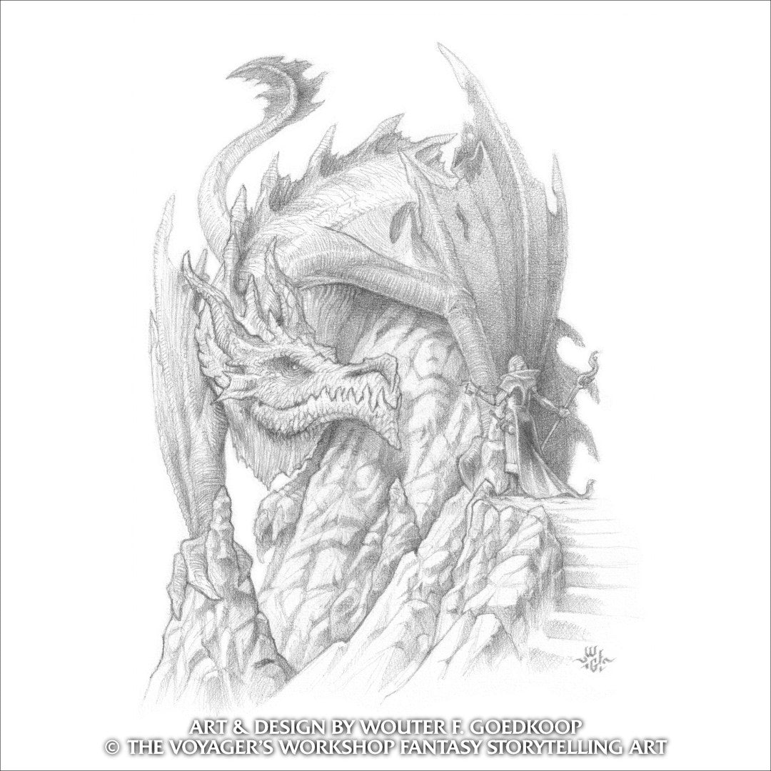 This hand drawn pencil dark fantasy stock art illustration captures a decisive moment in an unbalanced encounter, when a human mage manages to keep the scales in balance, if only for a little longer.