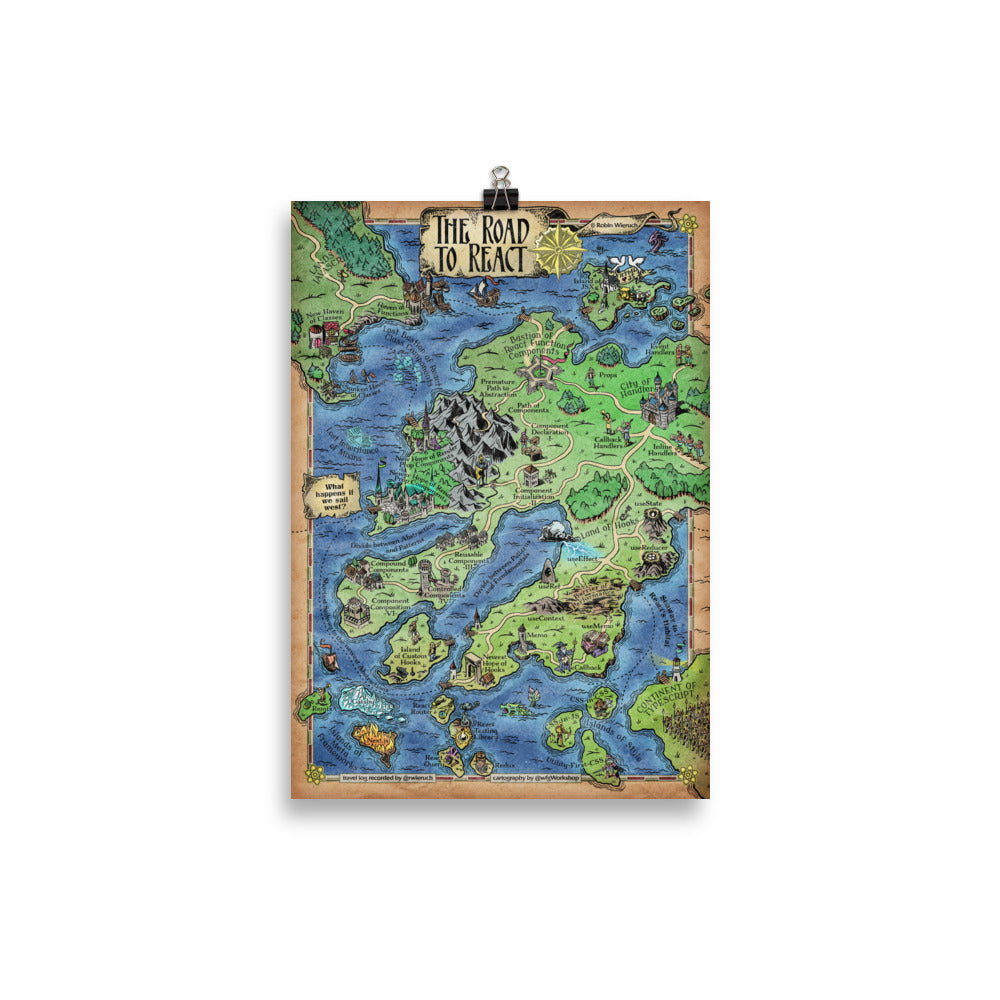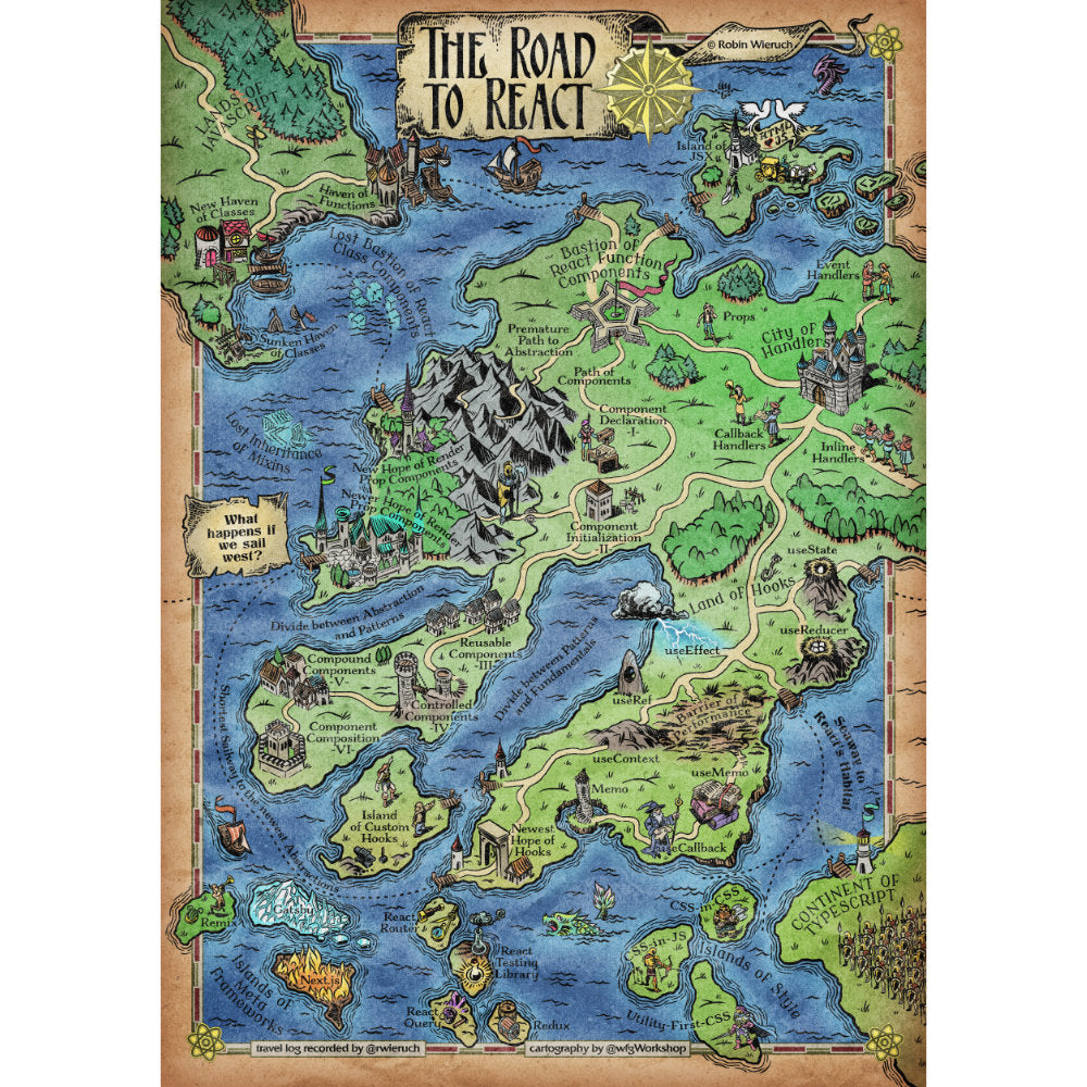 This one is for all the web designers and developers who enjoy a fun take on one of their favourite Javascript libraries! This map was created for and in collaboration with stack developer extraordinaire Robin Wieruch for his best selling book "The Road to React".
